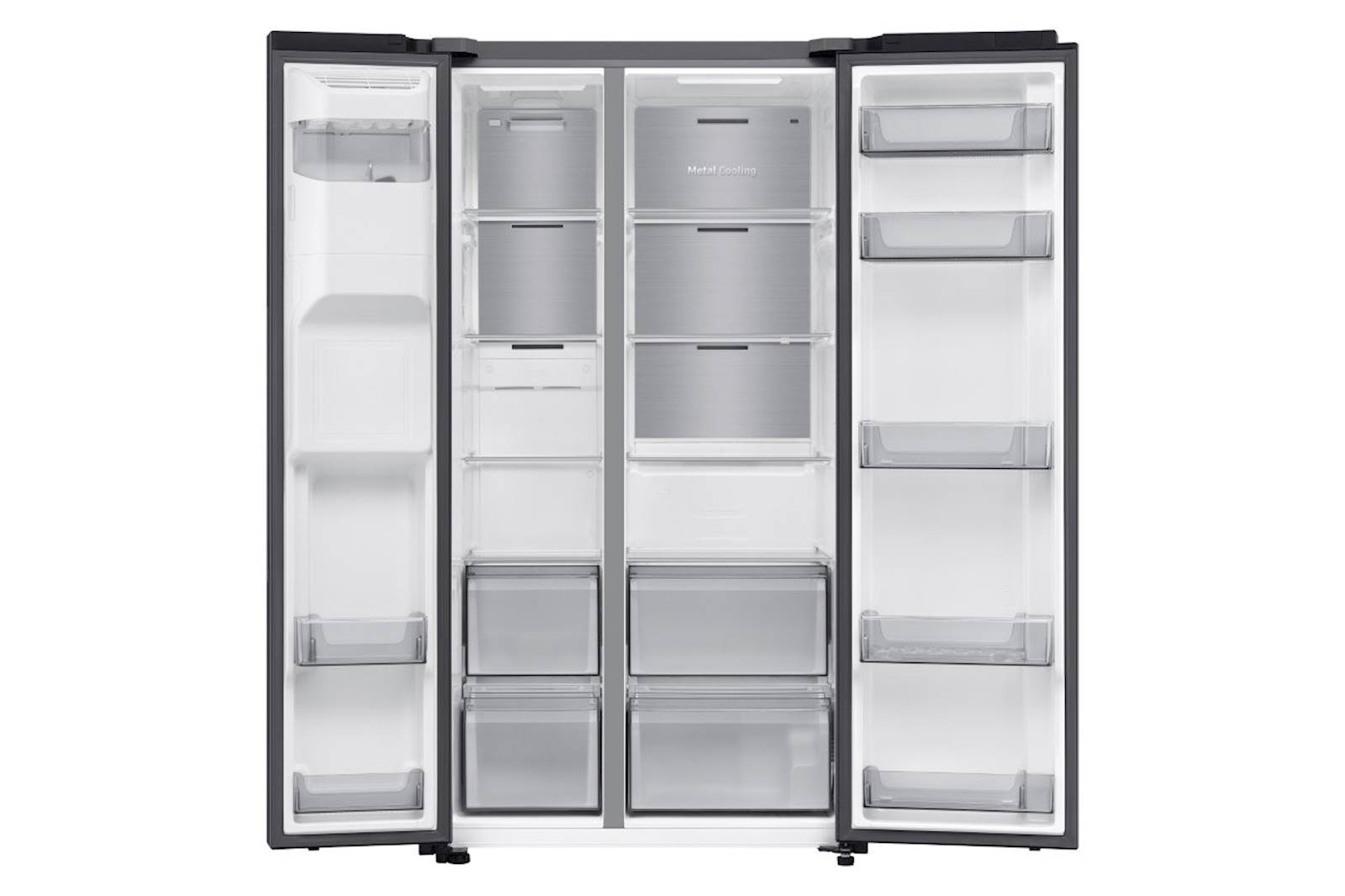 Hladilnik Samsung RS70F64KEFEO ima vgrajen Wi-Fi, ki vam omogoča sledenje in prilagajanje njegovega delovanja. Nadzirate lahko način hlajenja, spreminjate temperaturo in prejemate opozorila, če so vrata odprta. Zaradi SpaceMax tehnologije so stene veliko tanjše, kar ustvari več uporabnega prostora za shranjevanje živil. Al kompresor z inverterjem zagotavlja porabo manjše količine energije in ima 20-letno garancijo. V prostorni 640-litrski notranjosti lahko shranite veliko količino živil. S funkcijo Power Freez poskrbite za hiter dotok mrzlega zraka v zamrzovalnik. To je priročno zlasti pri zamrzovanju živil in pripravi ledu. Twin Cooling Plus prilagodi temperaturo in vlažnost v hladilniku in zamrovalniku ter ohrani živila v idealnih razmerah ter zaščiti njihov okus s preprečevanjem mešanja vonjav. S funkcijo Twin Cooling lahko preprosto tudi spremenite zamrovalnik v hladilnik in tako shranite več živil. SmartThings Energy zagotavlja koristne nasvete za učinkovito rabo energije.
