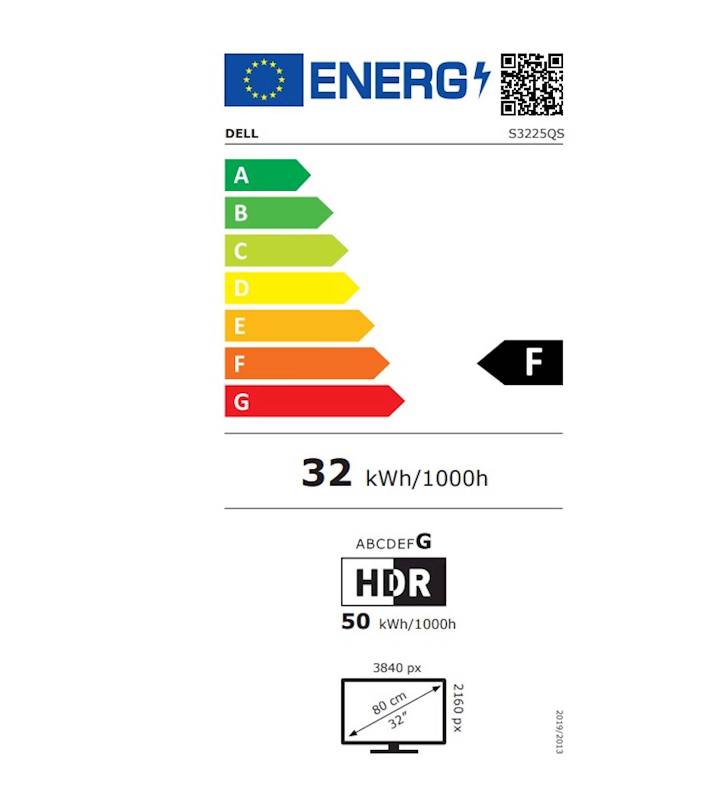 Energijska nalepka: https://eprel.ec.europa.eu/labels/electronicdisplays/Label_2200407.pdfInformacijski list: https://eprel.ec.europa.eu/screen/product/electronicdisplays/2200407Specifikacije: https://dl.dell.com/content/manual4679094-dell-32-plus-4k-monitor-s3225qs-user-s-guide.pdf?language=en-usVelikost zaslona: 80,01 cm (31,5'')Ločljivost: 3840 x 2160 ( 4K )Ločljivost dodatno: (16 : 09)Nastavljiv po višini: DaNastavljiv po višini dodatno: do 100 mmZaslon na dotik: NeZvočniki: DaZvočniki dodatno: 2x 5WUkrivljen zaslon: NePrilagodljivo osveževanje: AMD FreeSync PremiumNamen monitorja: Domača rabaPriključki: 2 x HDMI (HDCP 1.4 and 2.2), 1x DisplayPort (1.4), 1x Audio line-out,Tip matrike: VA, nebleščečSvetilnost: 300 cd/m2Kontrast: 3000:1Odzivni čas: 4 msVelikost pike: 0.18159 mmVidni kot: 178° vertikalno/ 178° horizontalnoHitrost osveževanja: 120 HzŠtevilo barv in barvni gamut: 1,07 milijarde, 99% sRGB (CIE 1931), 95% DCI-P3 (CIE 1976)Nastavljivost zaslona : nagib -5° do +21°, poševni -4°/4° (Slant), višina do 100 mmVESA standard: 100 x 100 mmBarva: siva/črnaEnergijski razred: GMere (Š x V x G): 712,54 mm x 445,77 - 545,74 mm x 221,84 mmMere brez stojala: 712,54 mm x 412,77 mm x 61,36 mmTeža: 5,97 kg brez stojala, 8,77 kg s stojalomDodatne informacije: Eye Comfort TechnologyPriloženo: monitor, stojalo, napajalni kabel, HDMI kabel, navodila za uporaboGarancija v mesecih: 3 leta