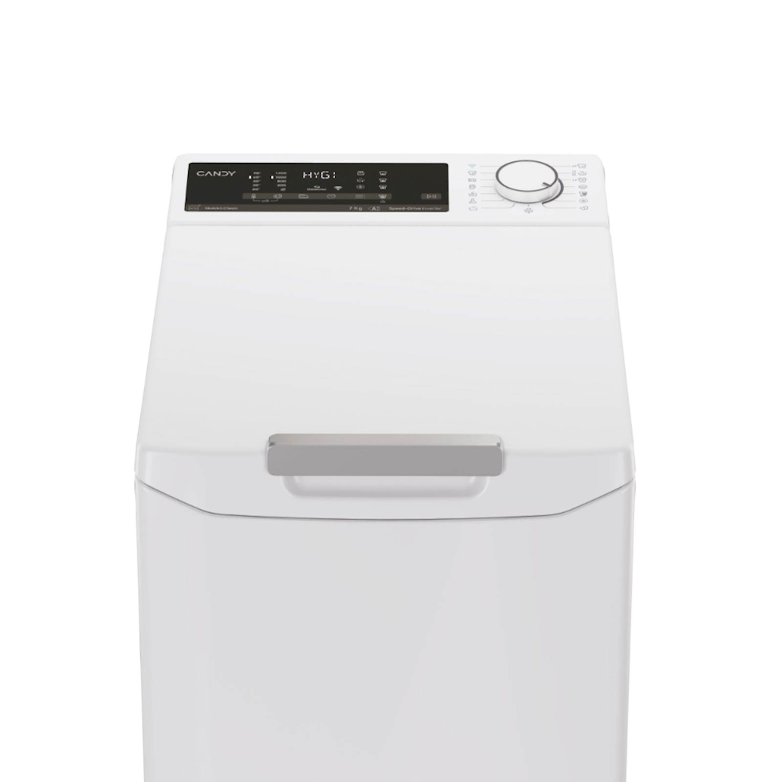 Pralni stroj Candy Pro Wash 500 z zgornjim polnjenjem TCA474TM5-S ima zmogljivost pranja 7 kg in hitrost ožemanja 1400 obratov/min. Pralni stroj se uvršča v energijski razred A, ponaša se z inverter motorjem, ki zagotavlja tišje delovanje, izjemno zmogljivost in daljšo življenjsko dobo. Poleg klasičnega upravljanja z vrtečim gumbom ima stroj na voljo tudi možnost upravljanja s pametnim telefonom preko wi-fi povezave z aplikacijo hOn. Opremljen je z napredno funkcijo KG detektor, ki oceni količino perila ter prilagodi čas pranja in porabo vode ter energije. Pralni stroj ima možnost podaljšanja jamstva na skupno 5 let, registrirajte svoj aparat na spletni strani: https://www.candy-home.com/sl_SI/podaljsanje-garancije/.