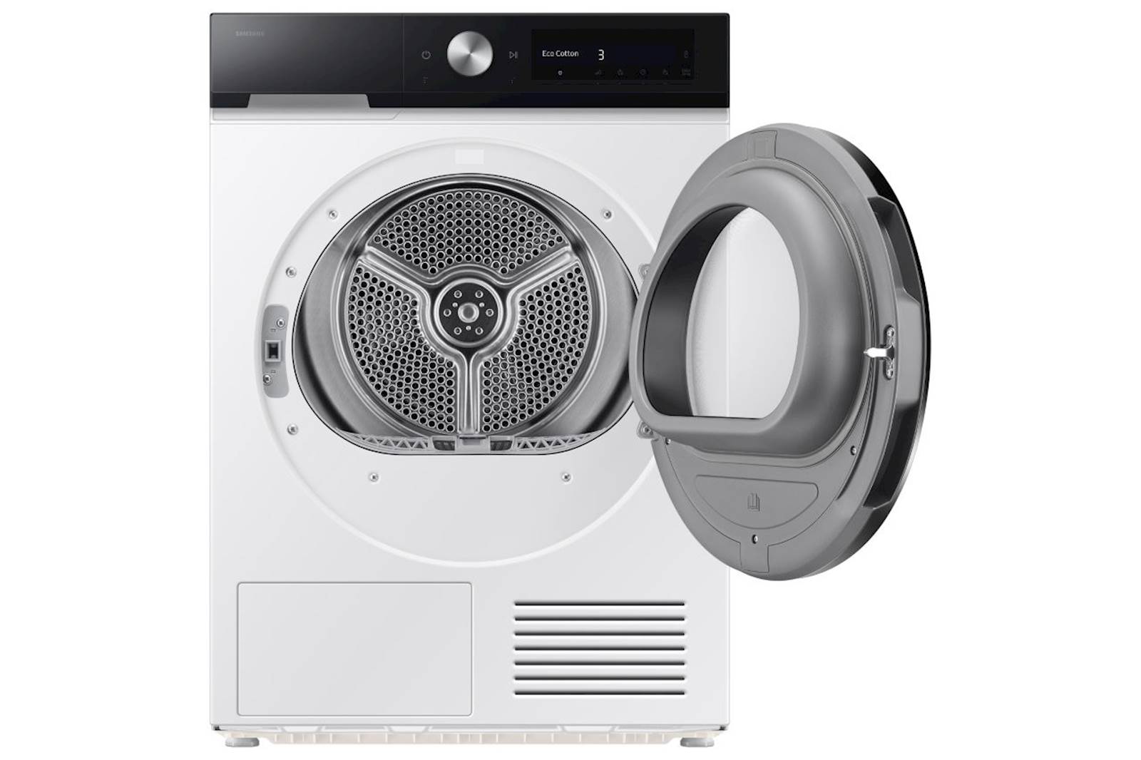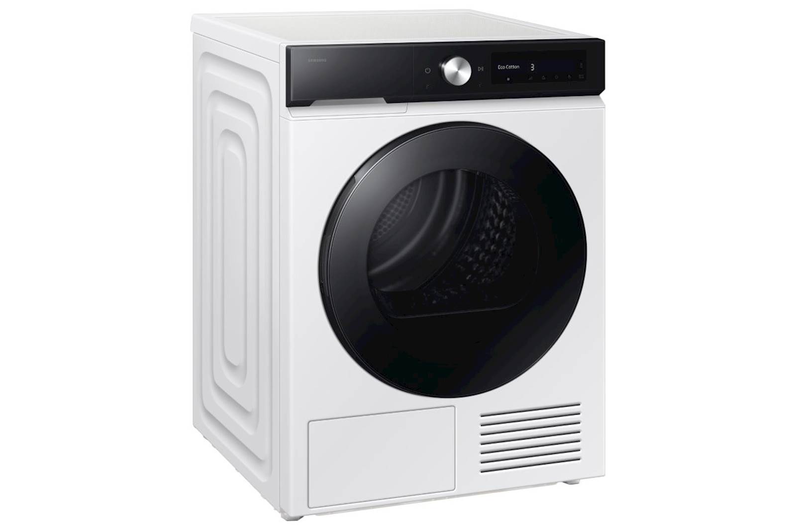 Sušilni stroj Samsung DV90DB7845GEU4 je sodoben kondenzacijski sušilni stroj z zmogljivostjo 9 kg. Napredna funkcija AI Dry samodejno prilagodi nastavitve sušenja glede na vrsto tkanine in količino vlage, medtem ko QuickDrive omogoča hitrejše sušenje brez kompromisov pri kakovosti. Združljiv je s pametno aplikacijo SmartThings, ki omogoča daljinsko upravljanje, spremljanje porabe energije in diagnostiko napak. Med pomembnimi funkcijami je zaščita pred mečkanjem perila, notranja osvetlitev bobna ter možnost spremembe smeri odpiranja vrat.