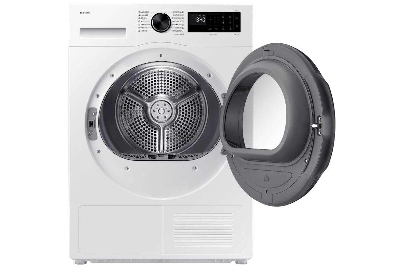 Samsung DV90DG52A0AELE je napreden sušilni stroj s tehnologijo toplotne črpalke. Primeren je za večje gospodinjstvo, saj poleg varčnega delovanja ponuja tudi številne pametne funkcije za preprosto uporabo. Vgrajena tehnologija OptimalDry uporablja senzorje za vlago in temperaturo, s čimer optimizira sušenje glede na vrsto perila in preprečuje poškodbe tkanin. S funkcijo QuickDry lahko hitro posušite manjšo količino oblačil v le 35 minutah, SmartThings povezljivost pa omogoča enostavno upravljanje in spremljan je delovanja na daljavo prek pametnega telefona. Funkcija Wrinkle Prevent zmanjša mečkanje perila po koncu cikla, notranja osvetlitev bobna pa poskrbi za boljši pregled nad sušenjem.