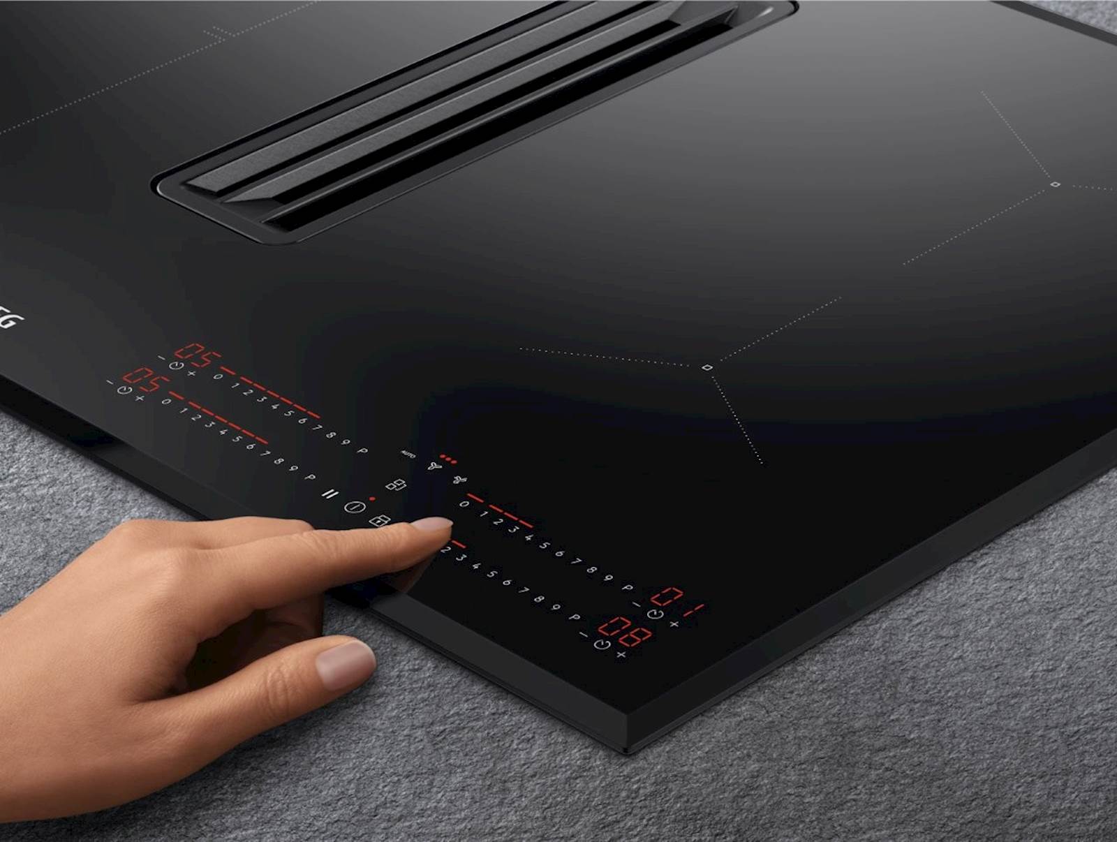 Funkcija Bridge združi dve kuhališči skupaj, tako da lahko uporabite kakršno koli veliko ali dolgo posodo. Povezani kuhališči, ki si delita isto temperaturno in časovno nastavitev, sta idealni, kadar kuhate za pogostitve ali večja praznovanja. 4 posamezni krmilni gumbi za kuhališča vam omogočajo nadzor nad 4 različnimi kuhališči in nastavitev ločenih časovnikov za vsako posebej. Druge funkcije vključujejo 9 stopenj moči, povečanje moči, aktivni dotik, varovalo za otroke in upravljanje hob2Hood. Filter 2 v 1 združuje ogljeni in maščobni filter, ki odstranjuje vonjave in maščobe. Če je naprava nameščena v načinu za kroženje zraka, je filter 2 v 1 nujen. Filter je mogoče enostavno odstraniti in ga očistiti v pomivalnem stroju. Samodejni način odsesavanja med kuhanjem. Če temperaturo na kuhalni plošči zvišate ali znižate, se temu prilagodi ventilator nape. Ko je kuhinjskih hlapov in pare preveč, pritisnite funkcijo povečanja moči (Boost) na napi za takojšnje zmogljivo odsesavanje. Povečanje moči (Boost) se aktivira za 10 min, da se učinkovito očisti zrak v kuhinji.
