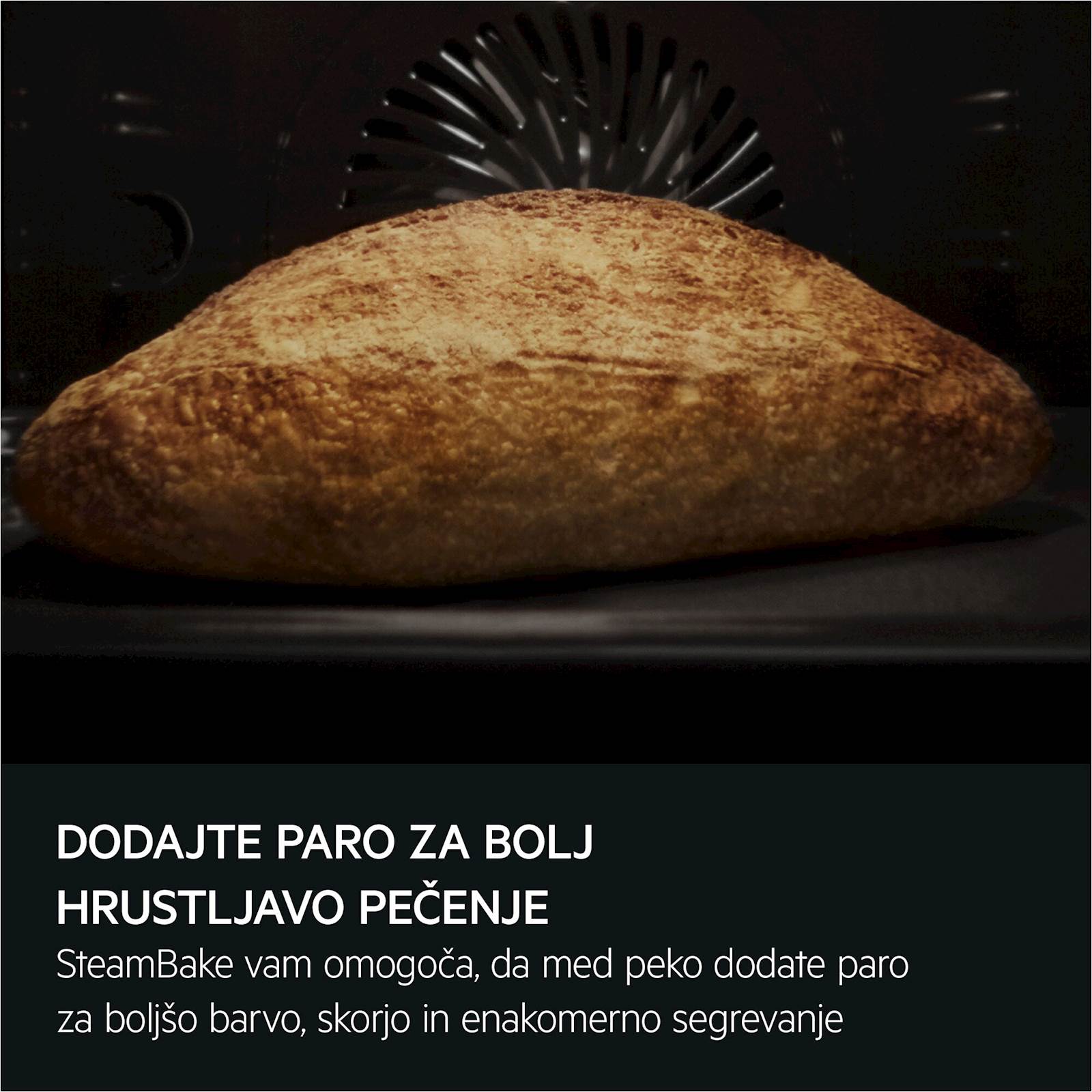 S SteamBake večnamensko pečico lahko med peko dodate paro. Jedi dobijo lepšo barvo in so hrustljavejše ter se enakomerneje segrejejo, ne da bi morali obračati pekač. Sonda za hrano omogoča natančen nadzor kuhanja za popolne rezultate ne glede na recept. Pečica vas bo obvestila, ko bo hrana dosegla pravo temperaturo. Pečica s funkcijo katalitičnega čiščenja je na zadnji steni prevlečena s posebno katalitično porozno površino, kjer se maščoba vpije in oksidira, ter čisto emajlirano votlino. Po čiščenju površino preprosto obrišite z vlažno krpo.