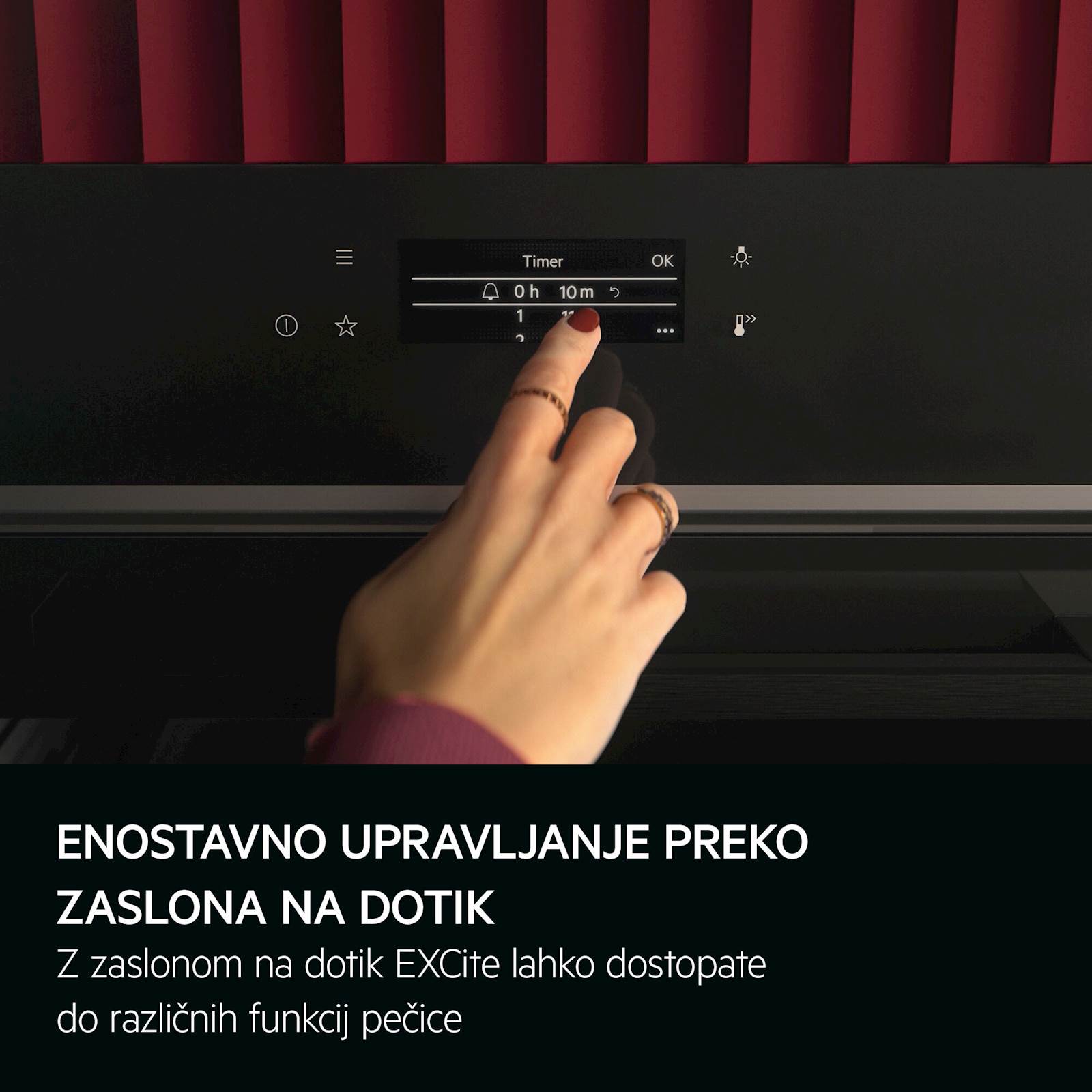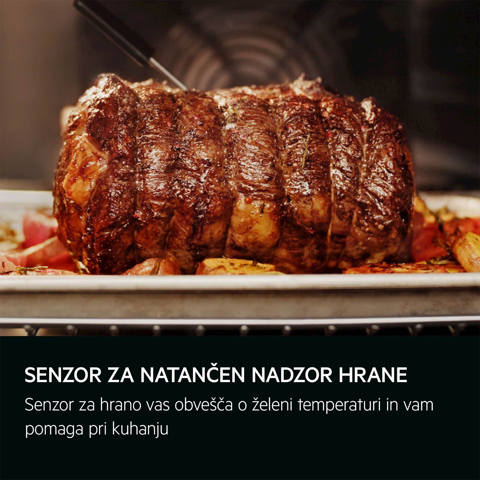 Sonda za hrano omogoča natančen nadzor kuhanja za popolne rezultate ne glede na recept. Pečica vas bo obvestila, ko bo hrana dosegla pravo temperaturo. EXCite je odziven prikazovalnik na dotik TFT, ki omogoča intuitiven dostop do različnih funkcij pečice. Z neposrednimi povratnimi informacijami vam zagotavlja popoln nadzor nad recepti. S kuharskim pomočnikom intuitivno dostopajte do jedi, katerim se pečica samodejno prilagodi. Lahko pa sami nadzorujete čas in temperaturo. Povežite se z našo aplikacijo in nadzorujte pečico od koder koli. Pridobite nasvete in izboljšajte kuharske tehnike s funkcijami, ki jih upravljate z aplikacijo. Funkcija Pirolitično čiščenje z visoko temperaturo upepeli maščobo in ostanke hrane, ki jih lahko preprosto obrišete z vlažno krpo.