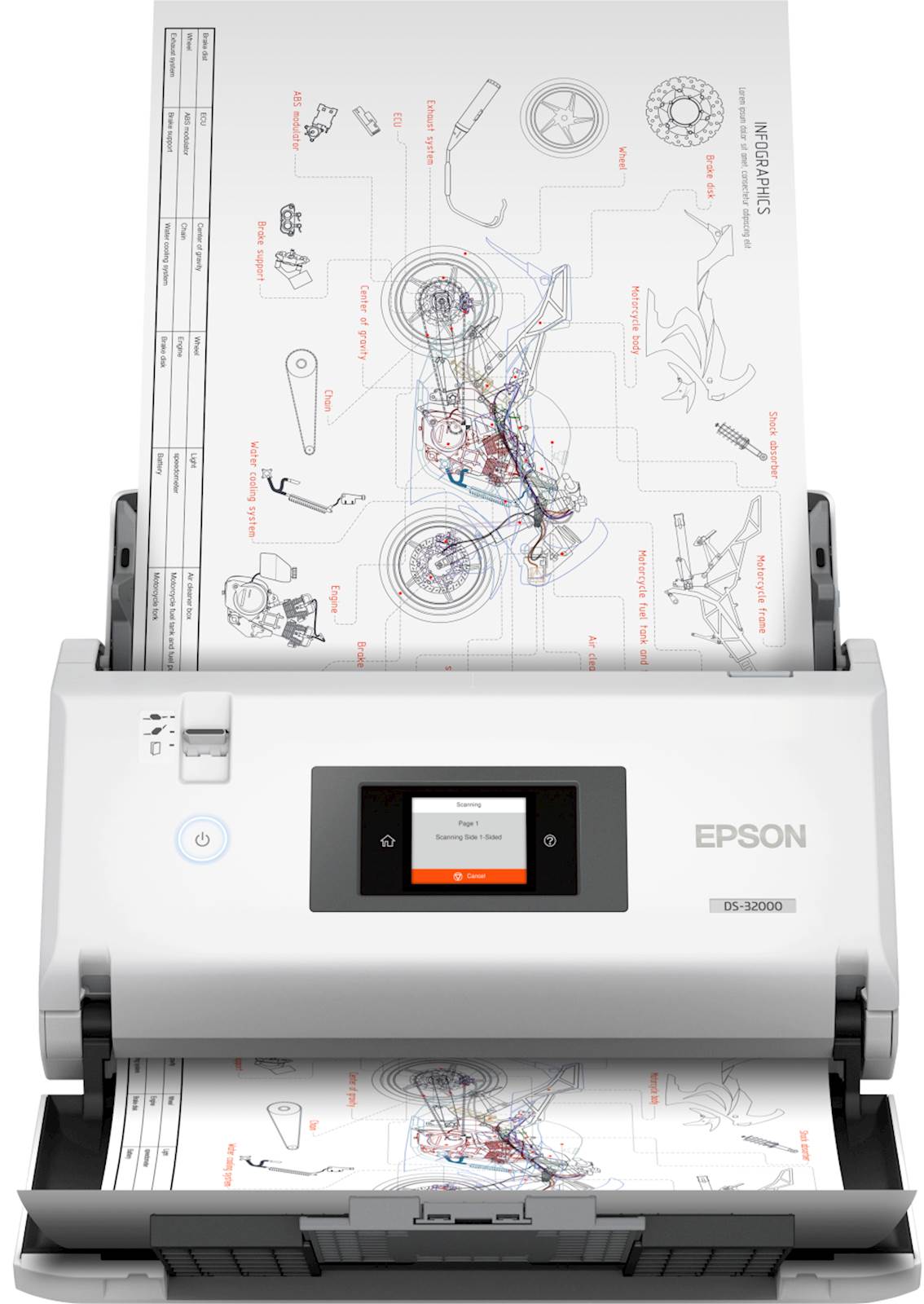 Epson DS-32000 je inovativen visokozmogljiv optični bralnik dokumentov formata A3 za velike obremenitve s hitrostjo branja do 90 strani/minuto ter prilagodljivostjo in zmogljivostjo, ki bosta kos še tako različnim okoljem optičnega branja. Uporablja napredno tehnologijo in ponuja vsestransko ravnanje z dokumenti, zato lahko brez težav optično preberete do 40.000 strani dnevno.