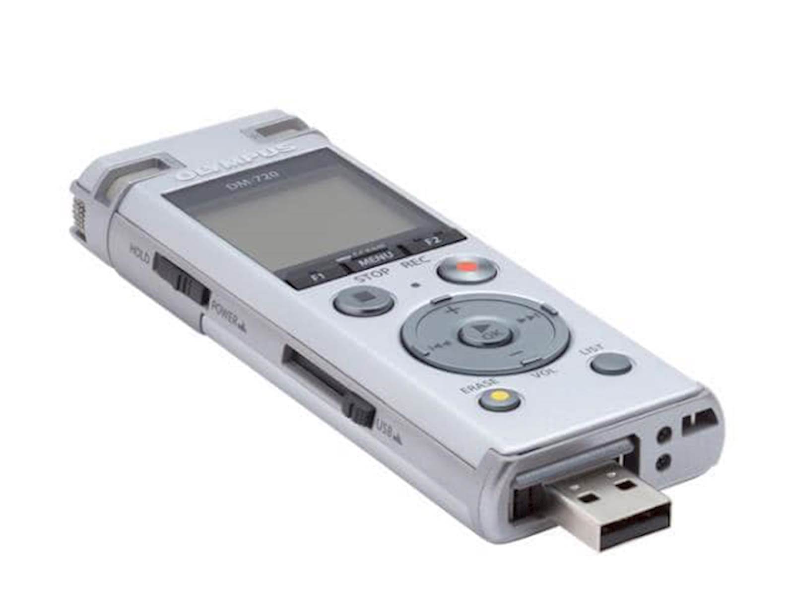 - Specifikacije: https://www.olympus.si/site/en/a/audio_systems/audio_recording/high_end_recorders/dm_720/index.htmlTip mikrofona: TrismerniVrsta diktafona: Poslovni Samodejno snemanja: DaSamodejno snemanja dodatno: VCVA - vklop snemanja ob zaznavi glasuVelikost notranjega spomina: 4 GBFormat zapisa: PCM in MP3, predvaja PCM (WAV) in MP3Čas snemanja: 985hŠtevilo map s posnetki: 5 map do 200 posnetkovSpominka kartica: Micro SD/SDHC kartica ni priloženaBaterija: BR404 polnilna Ni-MH baterijaVsebina škatle: diktafon, baterija, stojalo-sponka.Mere (Š x V x G): 105,9 x 39,6 x 141,4 mmTeža: 72 gDodatne informacije: Funkcija: glasovno vodenje-primerna za slepe (na voljo v jezikih: EN, FR, DE, ES, IT, RU, SV)Garancija v mesecih: 24